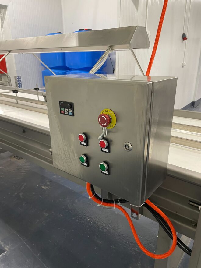 - Плавне регулювання швидкості руху продукції забезпечується контролером швидкості.