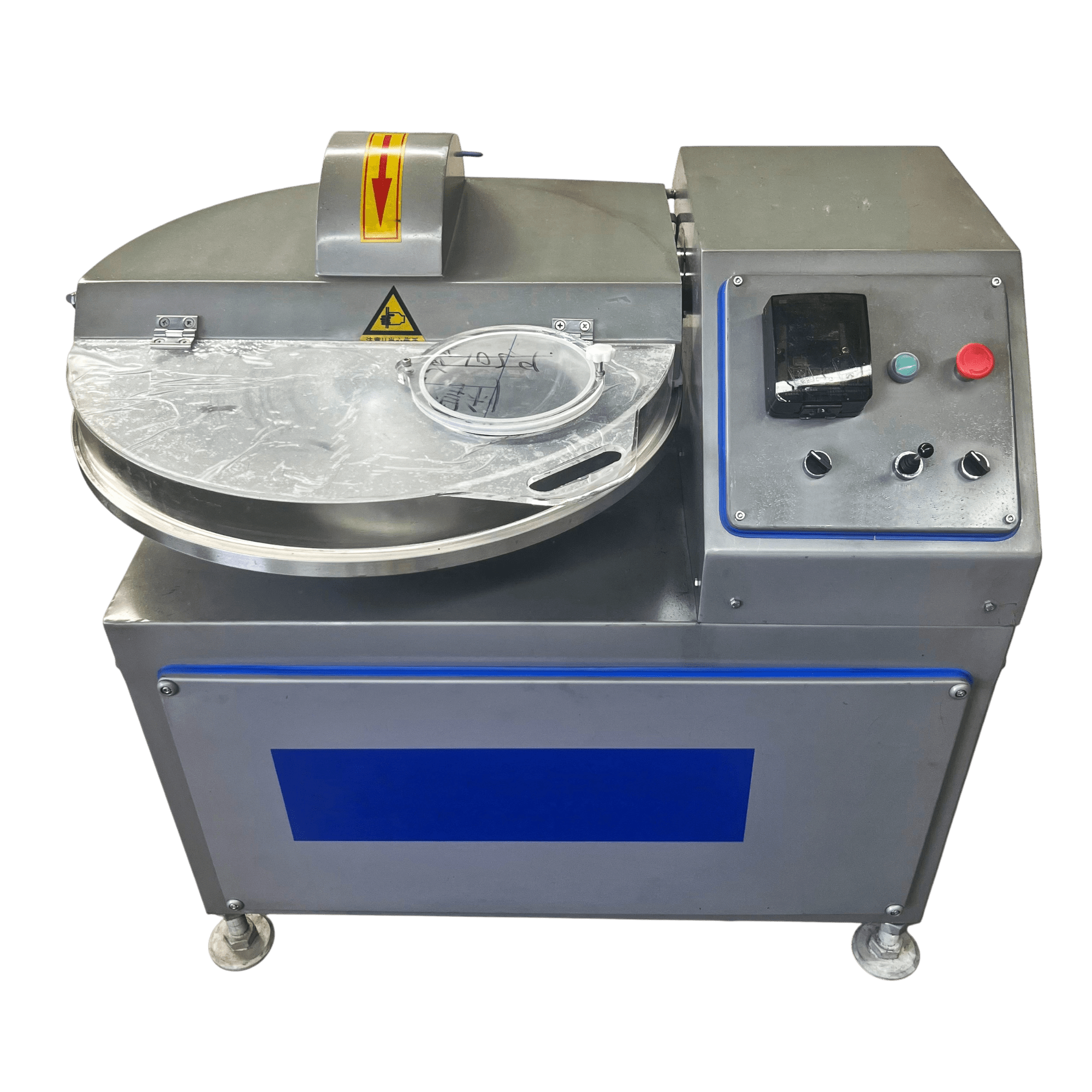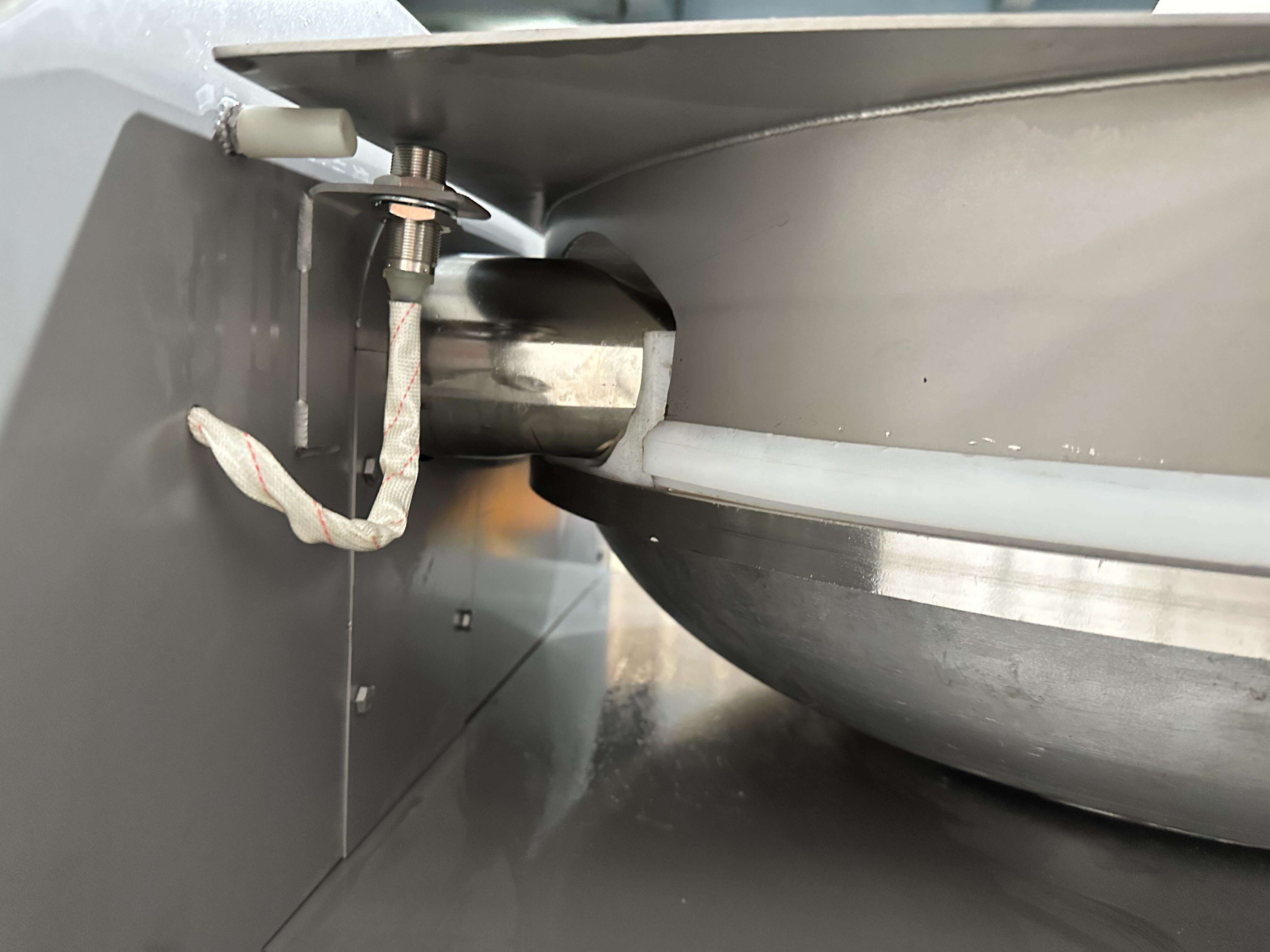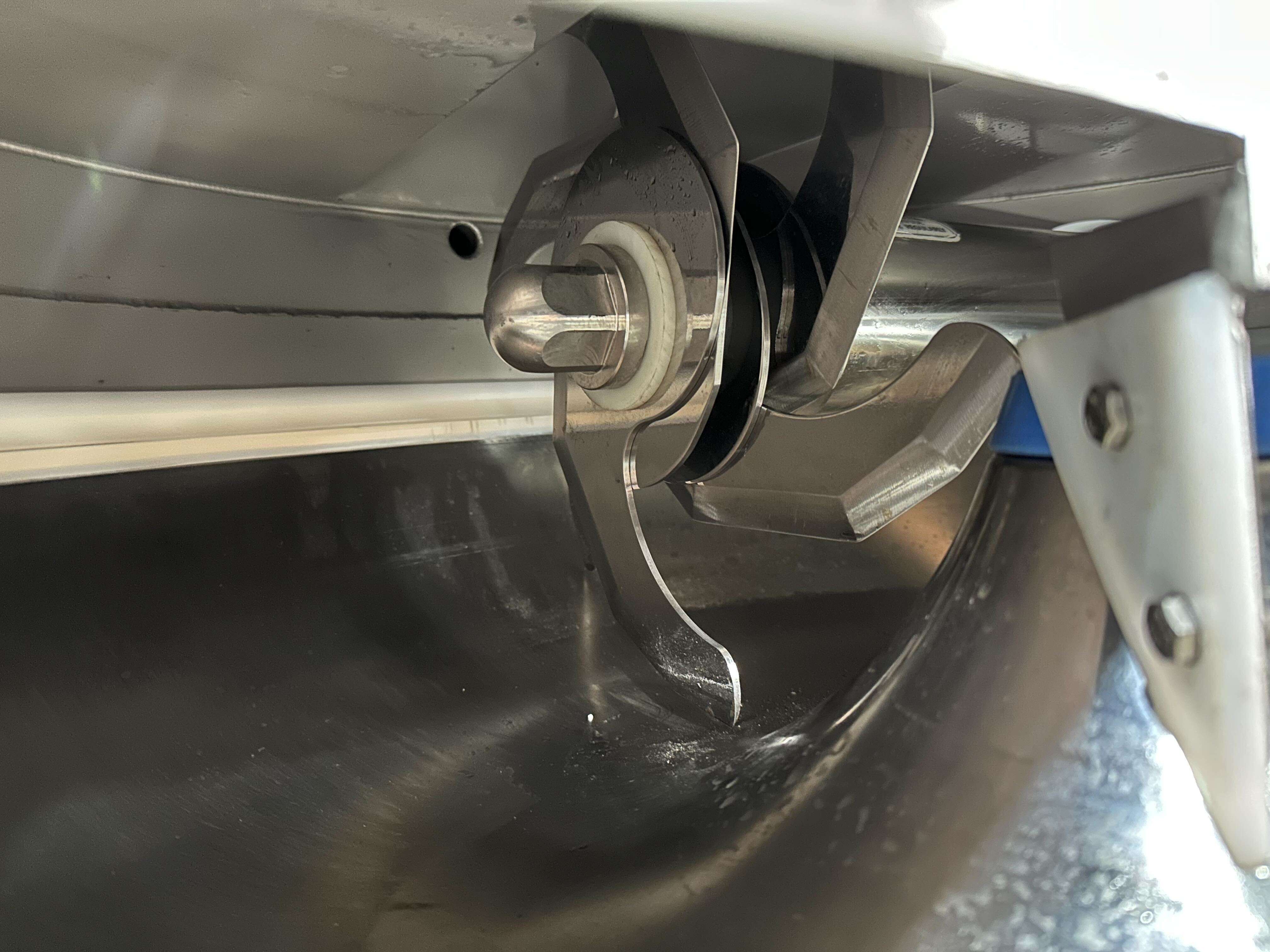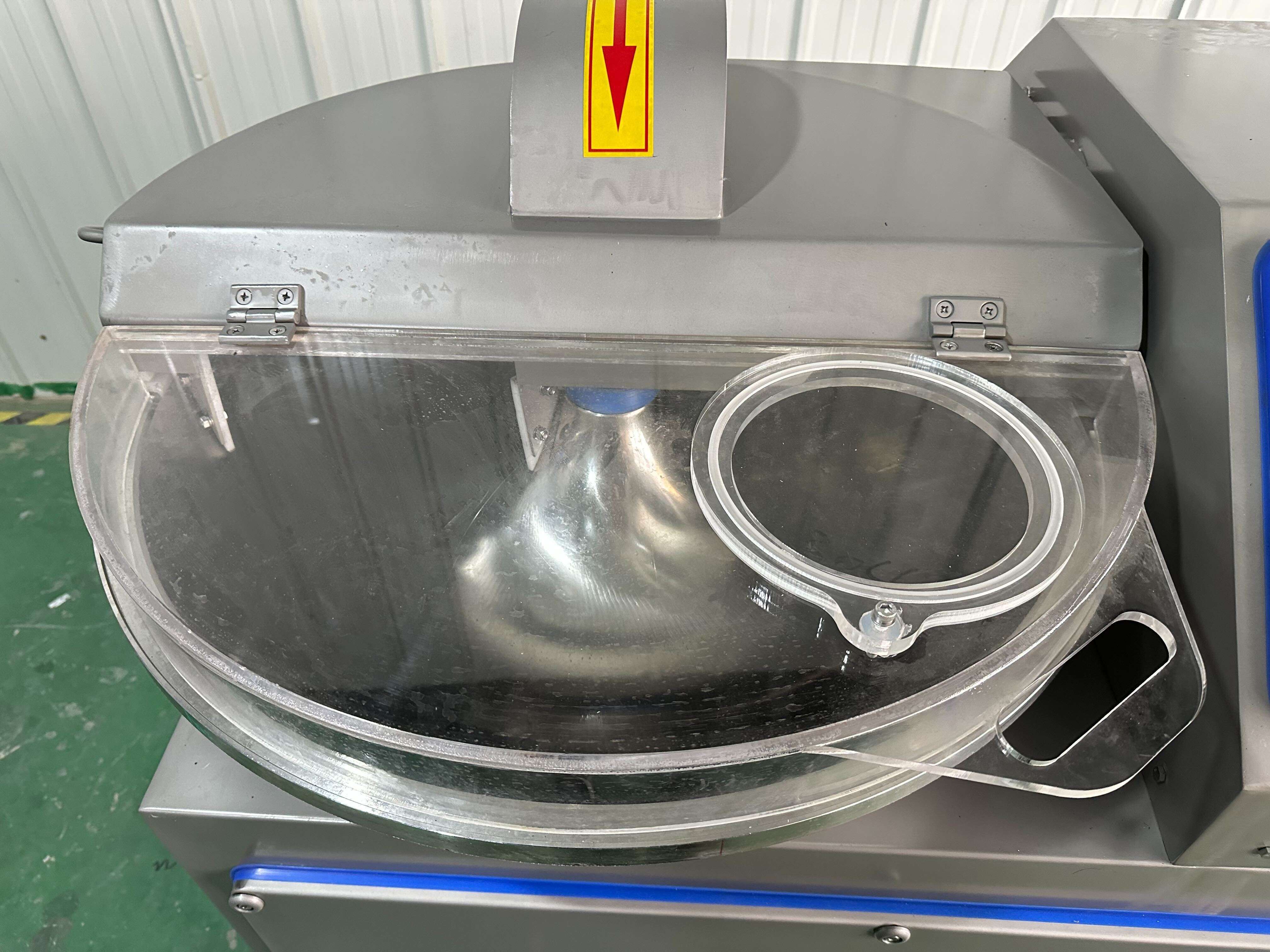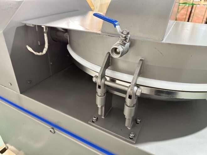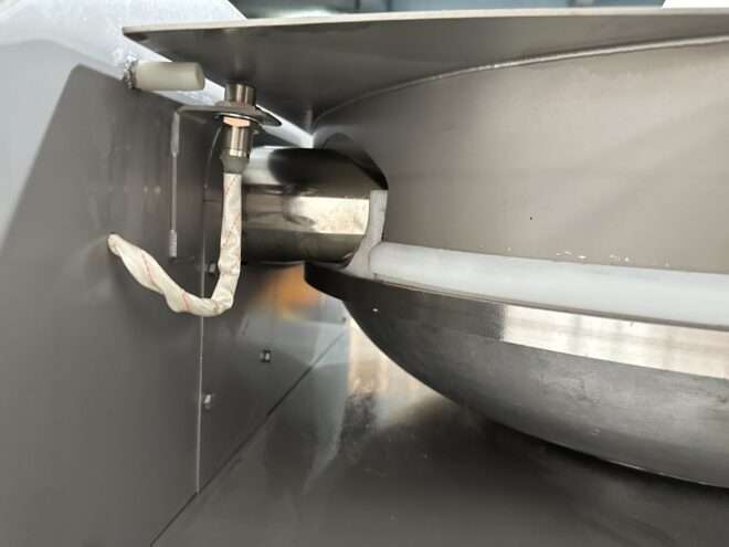 Сировина завантажується оператором у чашу кутера, після чого запускається цикл подрібнення за допомогою виносної панелі керування. Високошвидкісні ножі індивідуальної геометрії забезпечують інтенсивне подрібнення, тоді як обертання чаші гарантує рівномірне перемішування всієї маси. Конструкція дозволяє додавати спеції або рідину без зупинки процесу. Після досягнення необхідної консистенції готовий продукт вивантажується оператором вручну, а інтегрований кран на кришці чаші дозволяє швидко провести санітарну очистку після завершення роботи.
