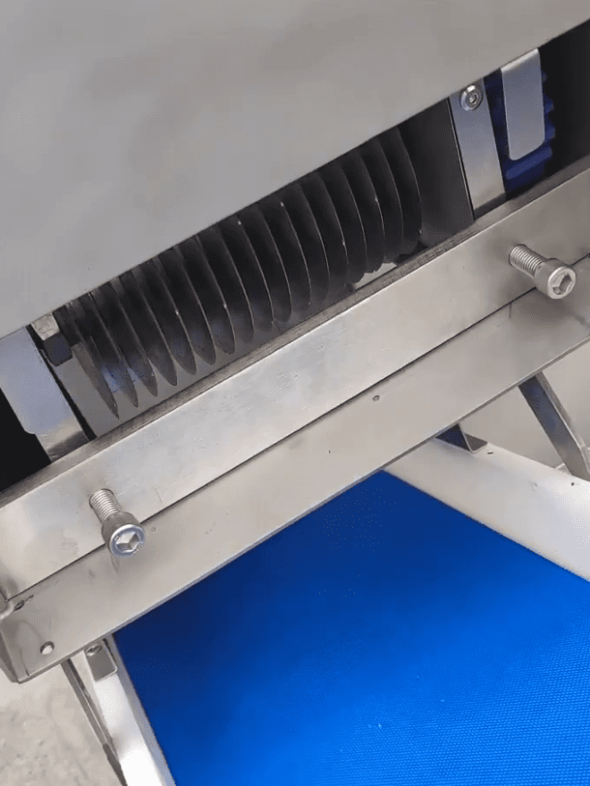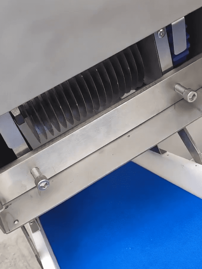 Продукт укладається на конвеєрну стрічку оператором або надходить за допомогою подавального транспортера. Далі по конвеєрній стрічці продукт прямує в зону нарізки, де потрапляє під дію горизонтально розташованих блоків дискових ножів і нарізається на смужки заданого розміру. Нарізаний продукт падає вниз на вивантажувальну конвеєрну стрічку і по ній подається в місткість для готової продукції або на наступний етап обробки.