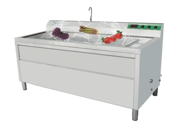 Продукт завантажується в корзини, після чого встановлюються таймер для миття та температура нагріву води. Вода заповнює ванну, а знизу подається повітря, яке утворює бульбашки. Ці бульбашки активно впливають на продукт, обертаючи його та забезпечуючи рівномірне миття з усіх боків. Після завершення процесу миття можна дістати кошики з продуктом і викласти його для подальшого перероблення або пакування.