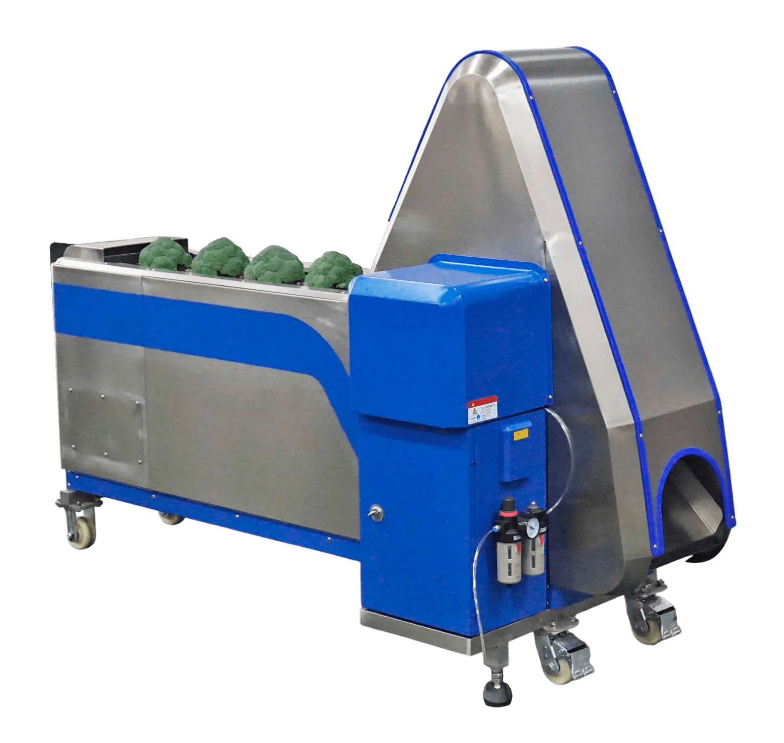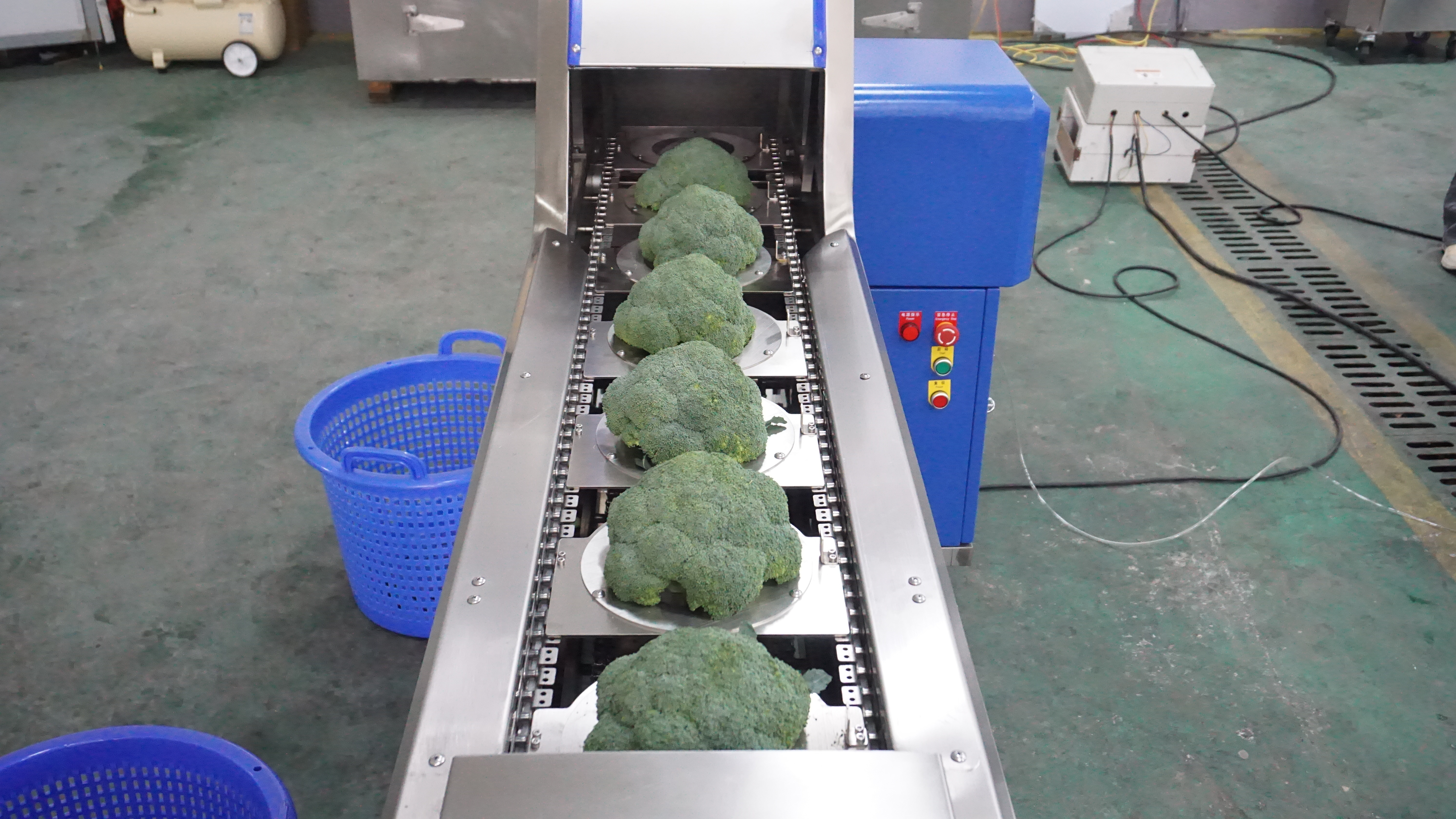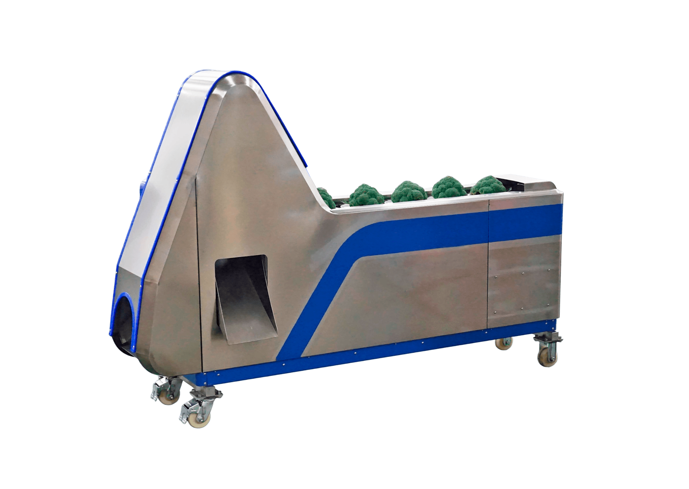 Машина STvega Broot Cutting H800 призначена для швидкої та точної обрізки качанів броколі, цвітної капусти та капусти романеску. Завдяки продуманій системі позиціонування овочів та автоматизованому обрізанню, обладнання забезпечує високу продуктивність при мінімальному втручанні оператора. Машина ідеально підходить для переробних підприємств, що займаються підготовкою овочів до заморожування, пакування або подальшої обробки.