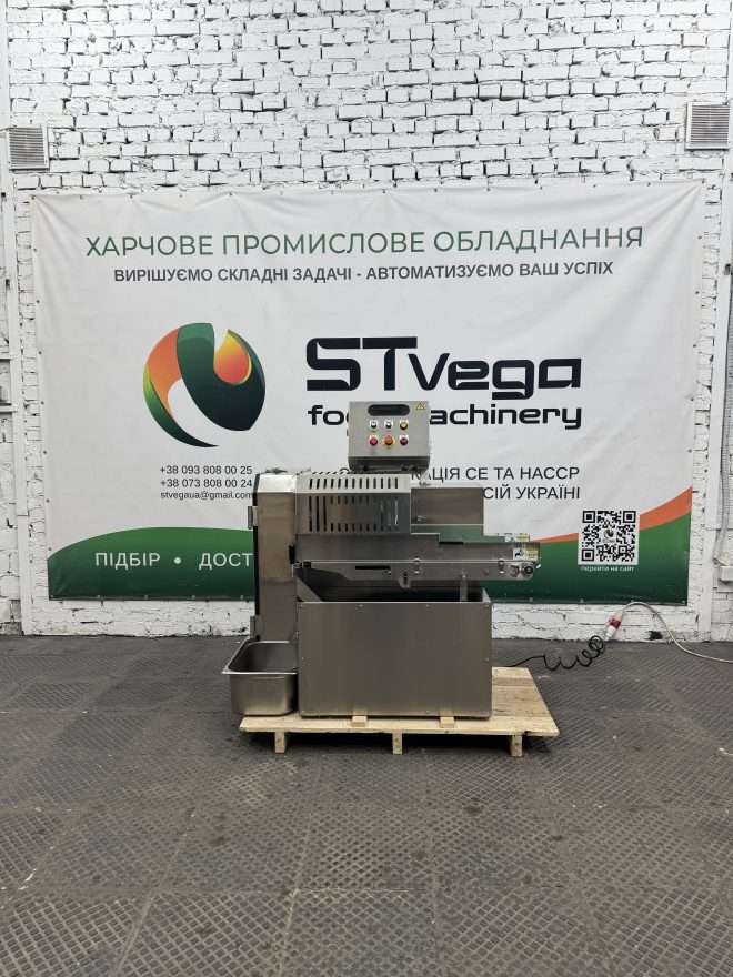 - Корпус із харчової нержавіючої сталі гарантує повну відповідність санітарно-гігієнічним нормам та тривалий термін експлуатації машини.
