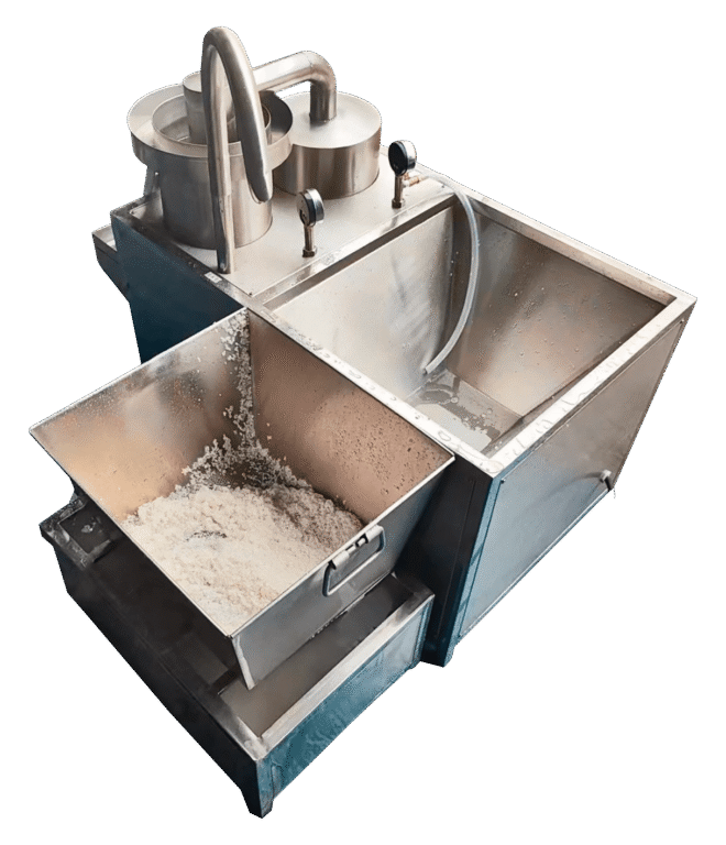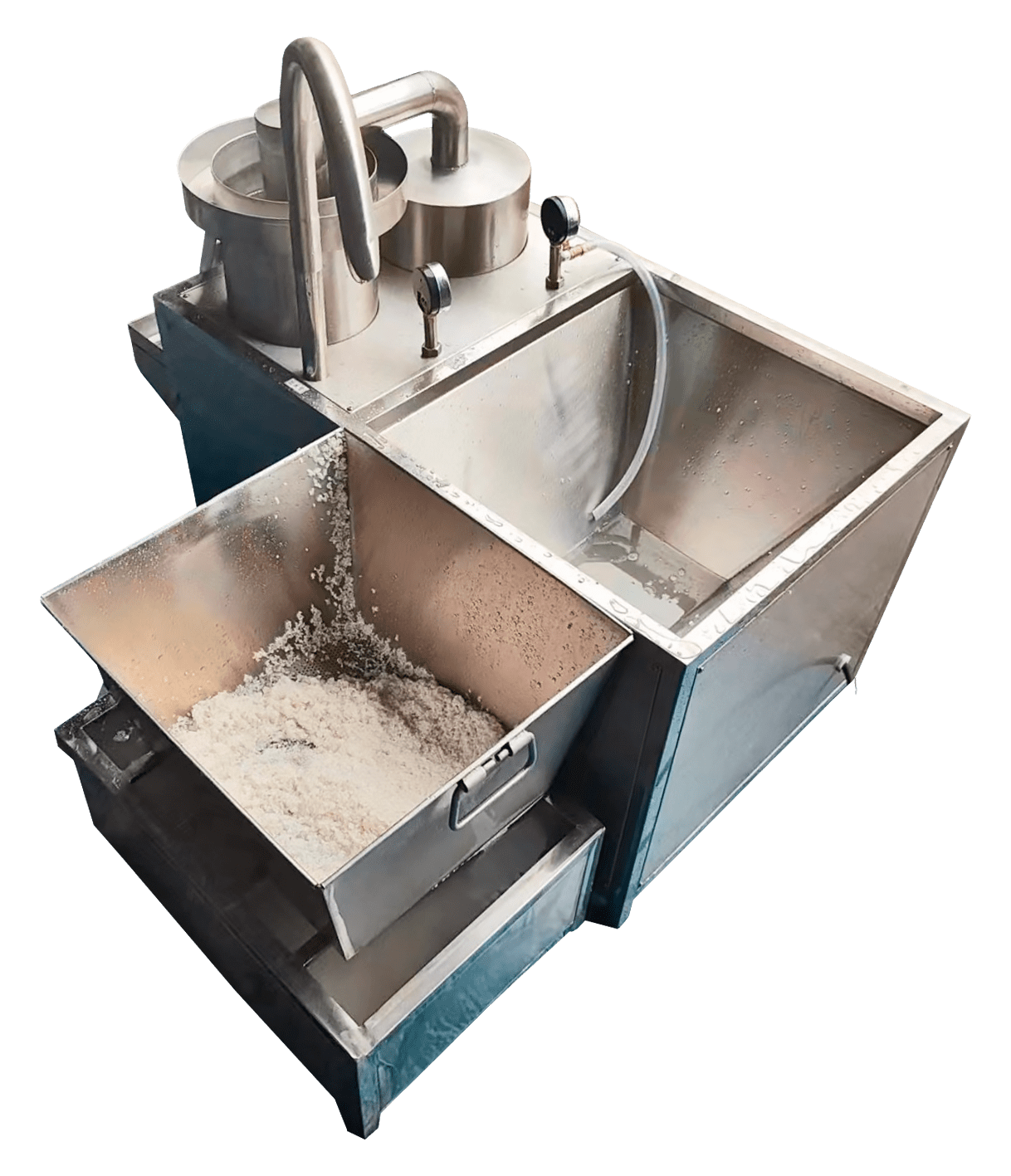 - Завдяки двом різним сепараторам продукт під час промивання додатково очищується від багатьох видів шкідливих домішок.