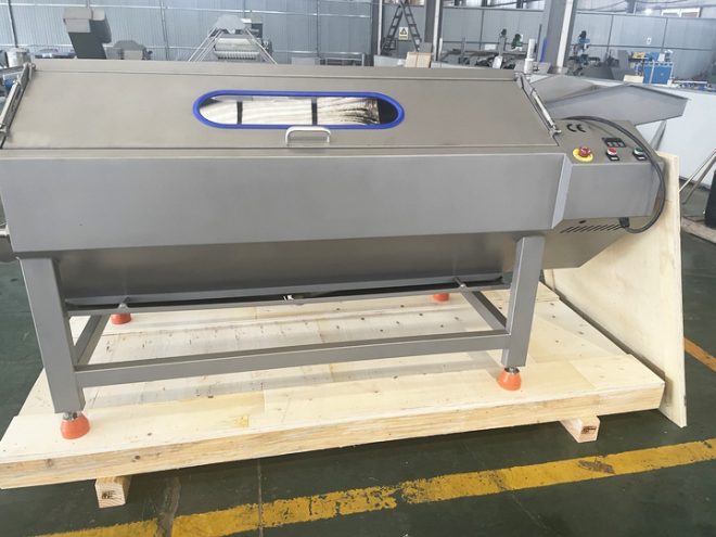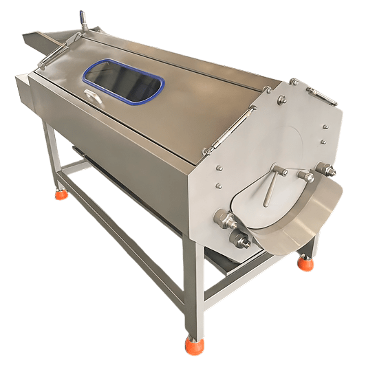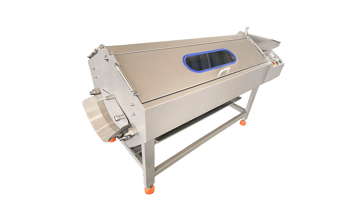 Після завершення циклу оператор за допомогою важеля відкриває кришку мийної ванни, і очищений продукт автоматично потрапляє у вивантажувальний жолоб, звідки спрямовується в тару або на наступний етап технологічного процесу.