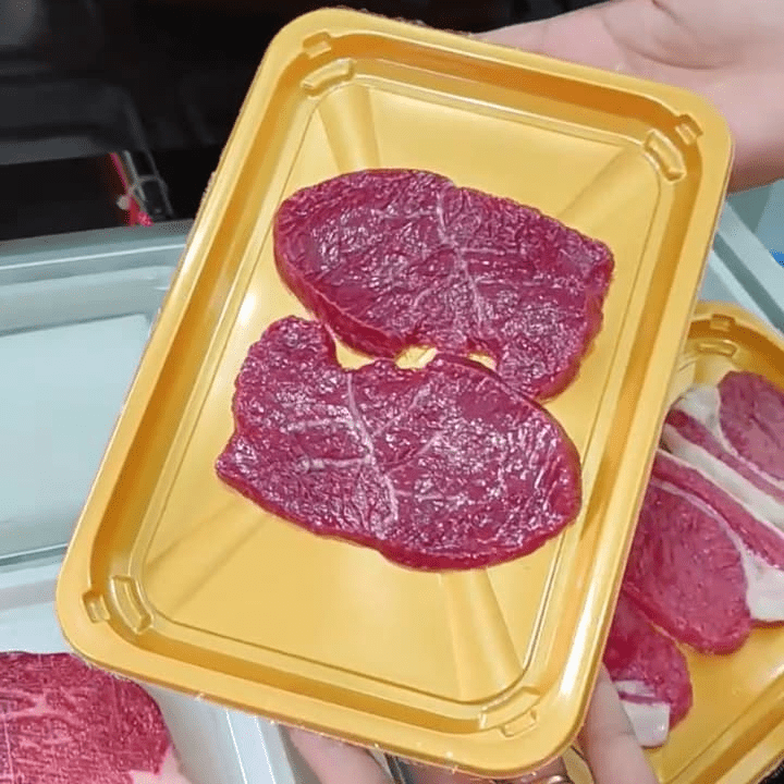 - Завдяки щільному вакуумному обтягуванню плівкою продукція в лотках виглядає привабливо та зберігає свіжість без застосування консервантів.